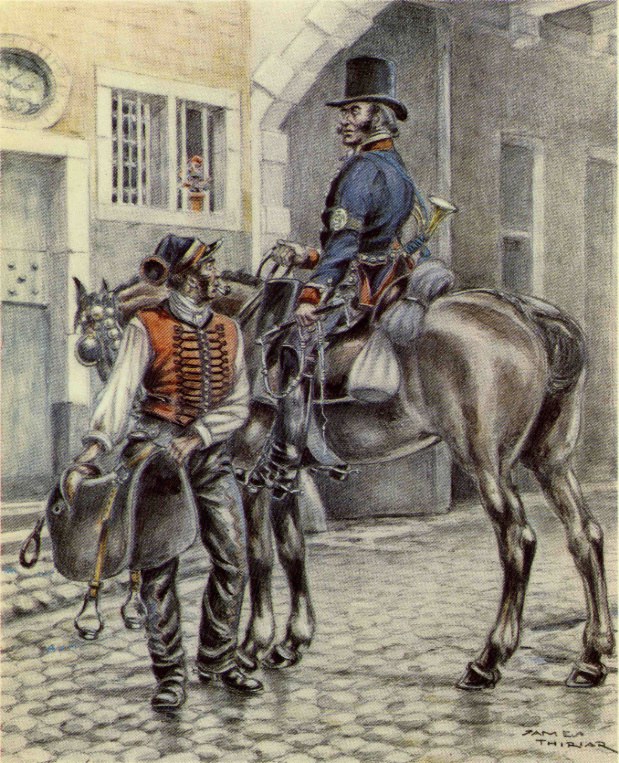 1830: Postiljon uit het land van Luik 1830-1840 volgens tekening van James Thirair.